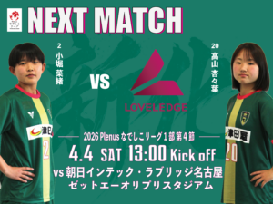 【Ladies】4/4(土) 朝日インテック・ラブリッジ名古屋戦 試合…