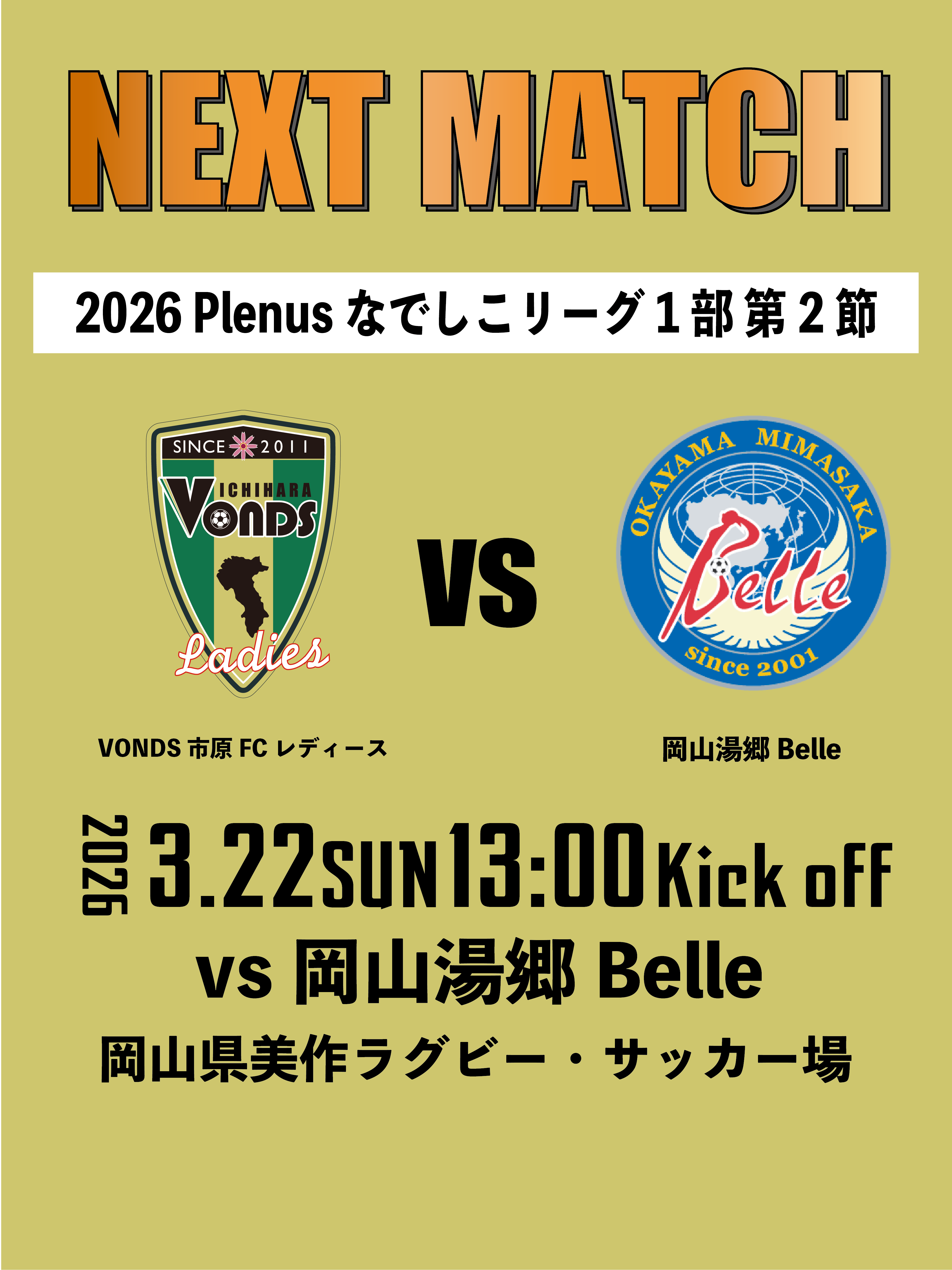 日頃より皆様にはご支援、ご協力いただき、感謝申し上げます。 VONDS市原FCレディースU…