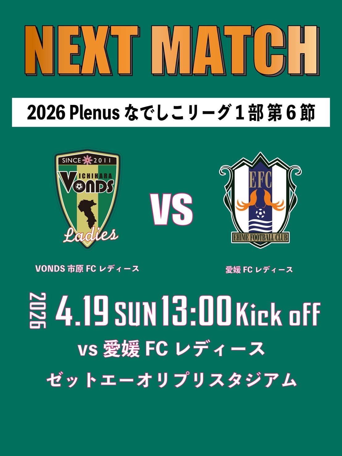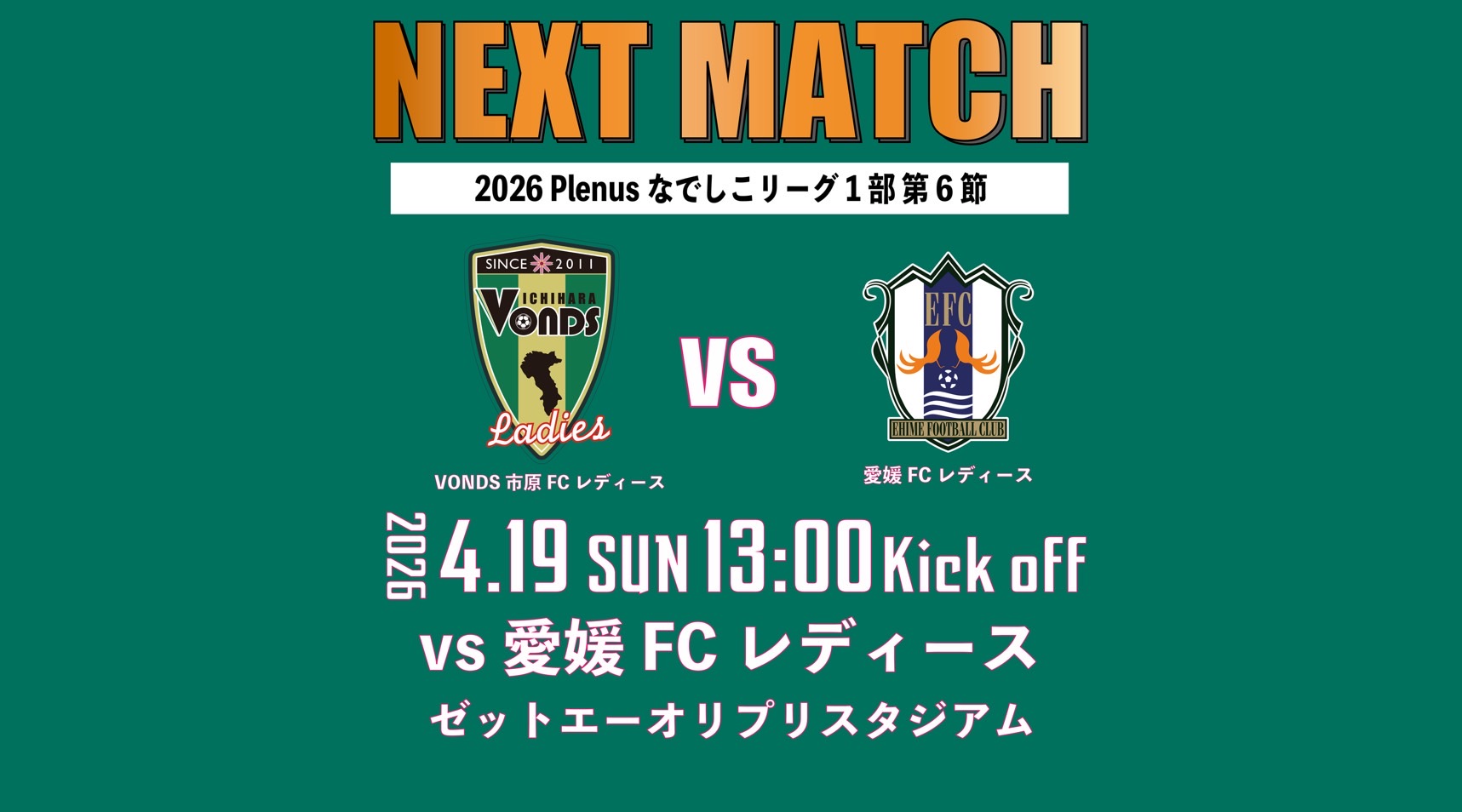 【Ladies】4/19(日) 愛媛FCレディース戦 試合情報