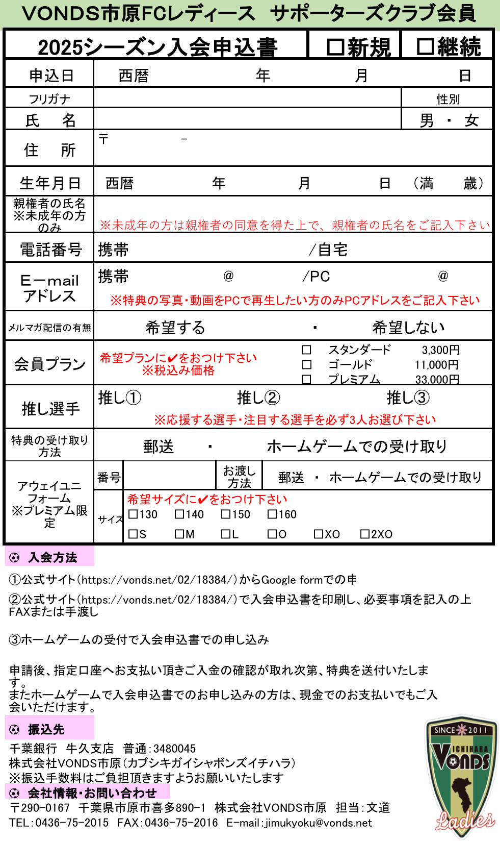 2025シーズンのVONDS市原FCサポーターズクラブ会員の募集についてお知らせいたします。