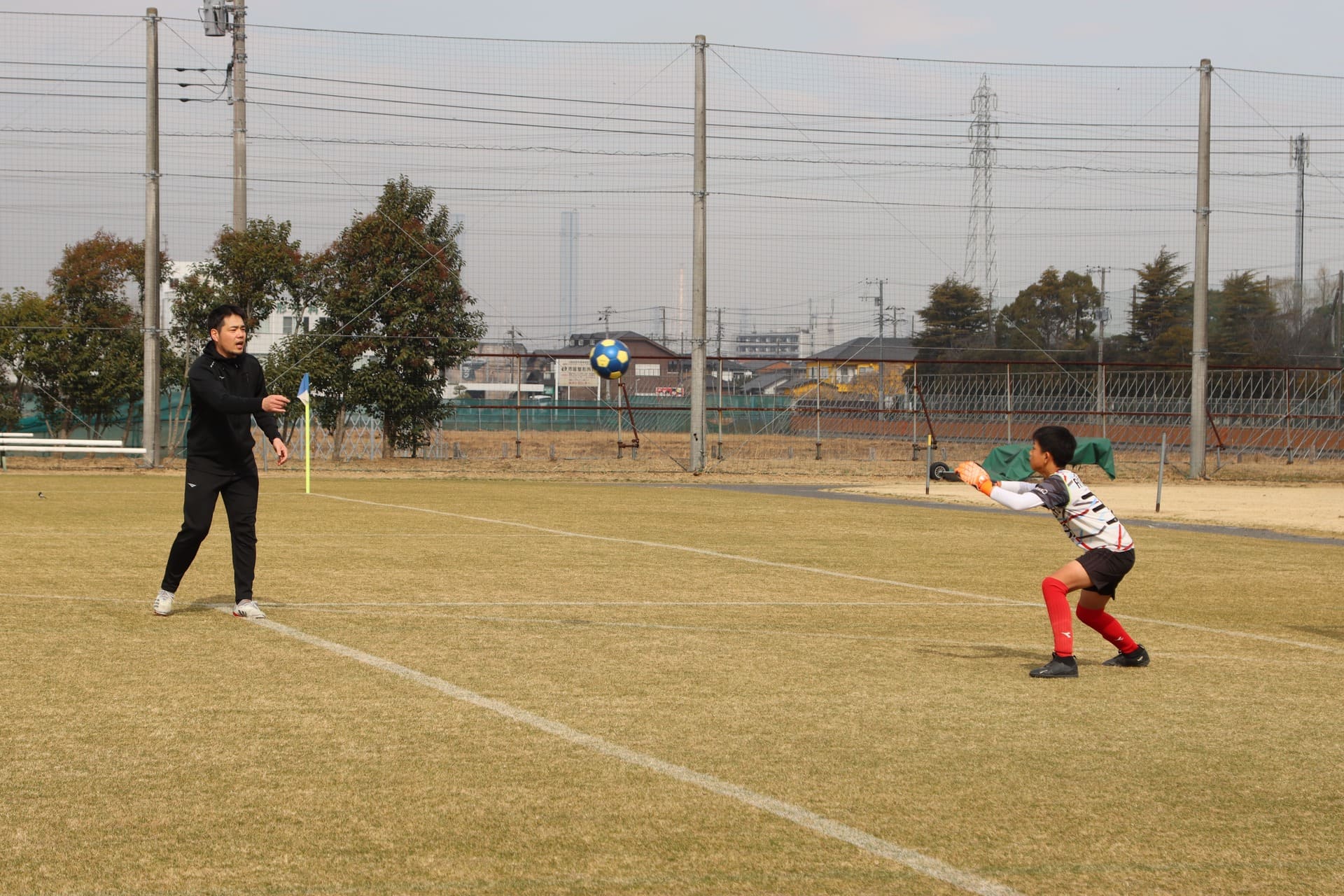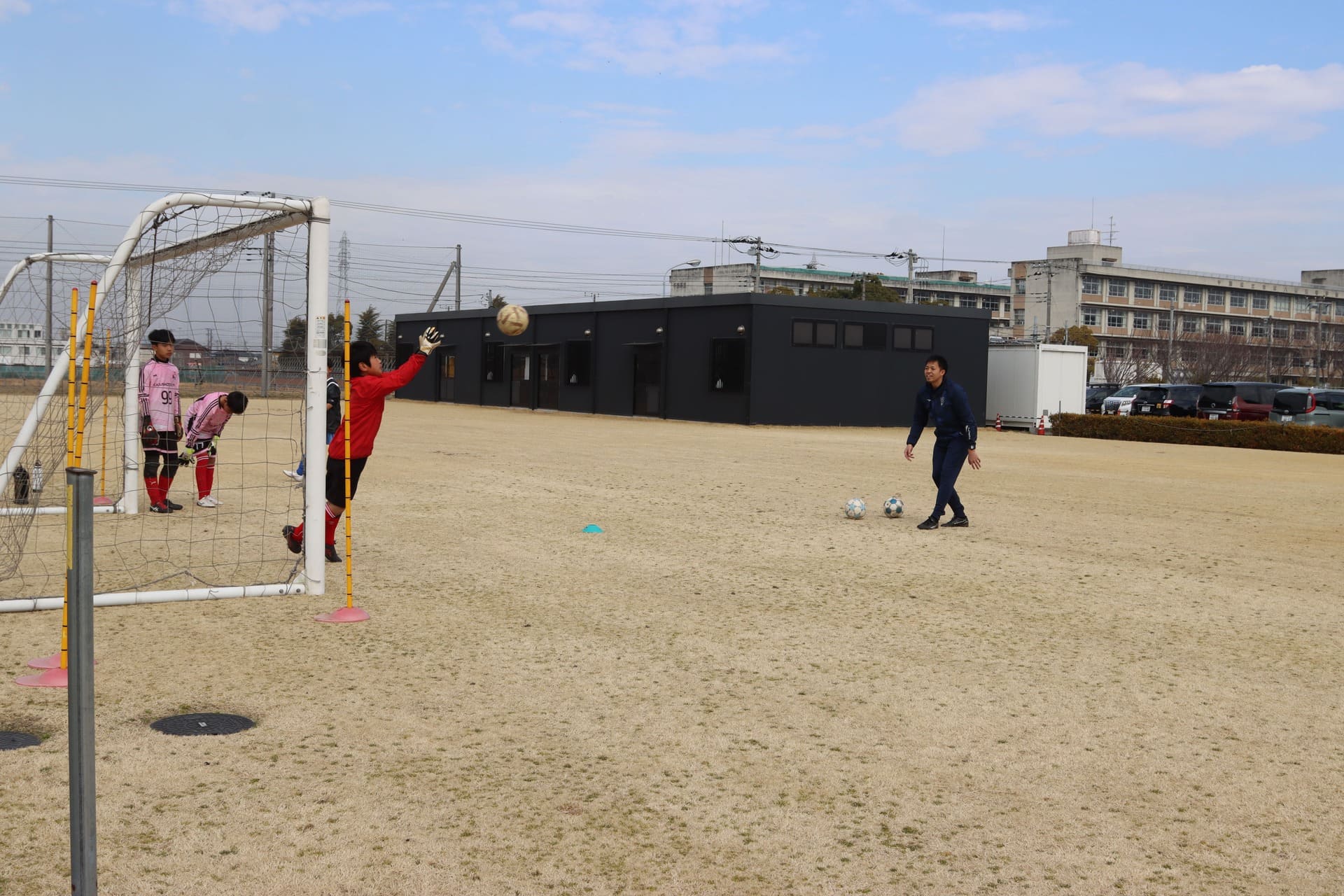 さらに代表取締役社長 佐藤健、1月にフロントスタッフ就任を発表した原田直樹がGKコーチとして、子どもたちへコーチング指導を行いました。