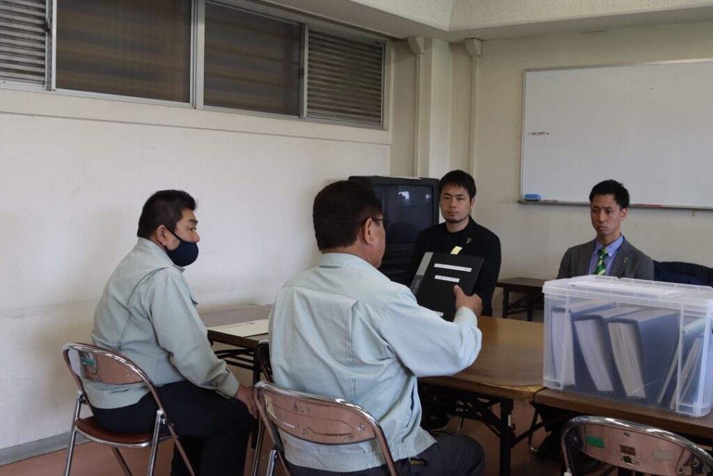 施工者の松栄建設株式会社様のもとで開始された竣工検査に、株式会社VONDS市原より取締役財務担当 永野佑一、代表取締役社長 佐藤健、取締役 田中智志、担当 小石哲也が出席。