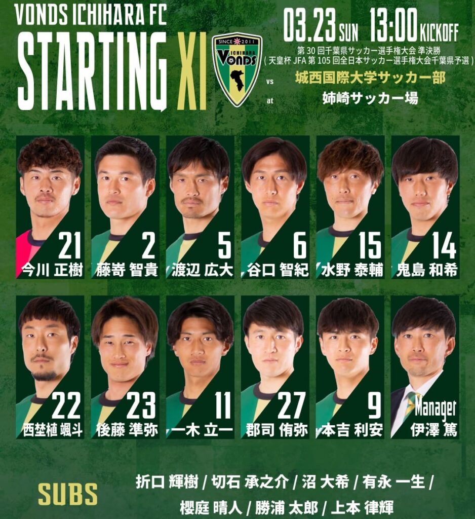 3/23(日)に行われた【第30回千葉県サッカー選手権大会(天皇杯 JFA 第105回全日本サッカー選手権大会 千葉県予選) 準決勝 城西国際大学サッカー部】戦 試合結果をお知らせします。