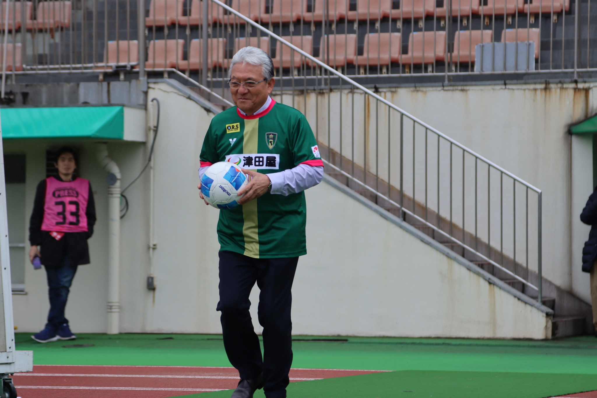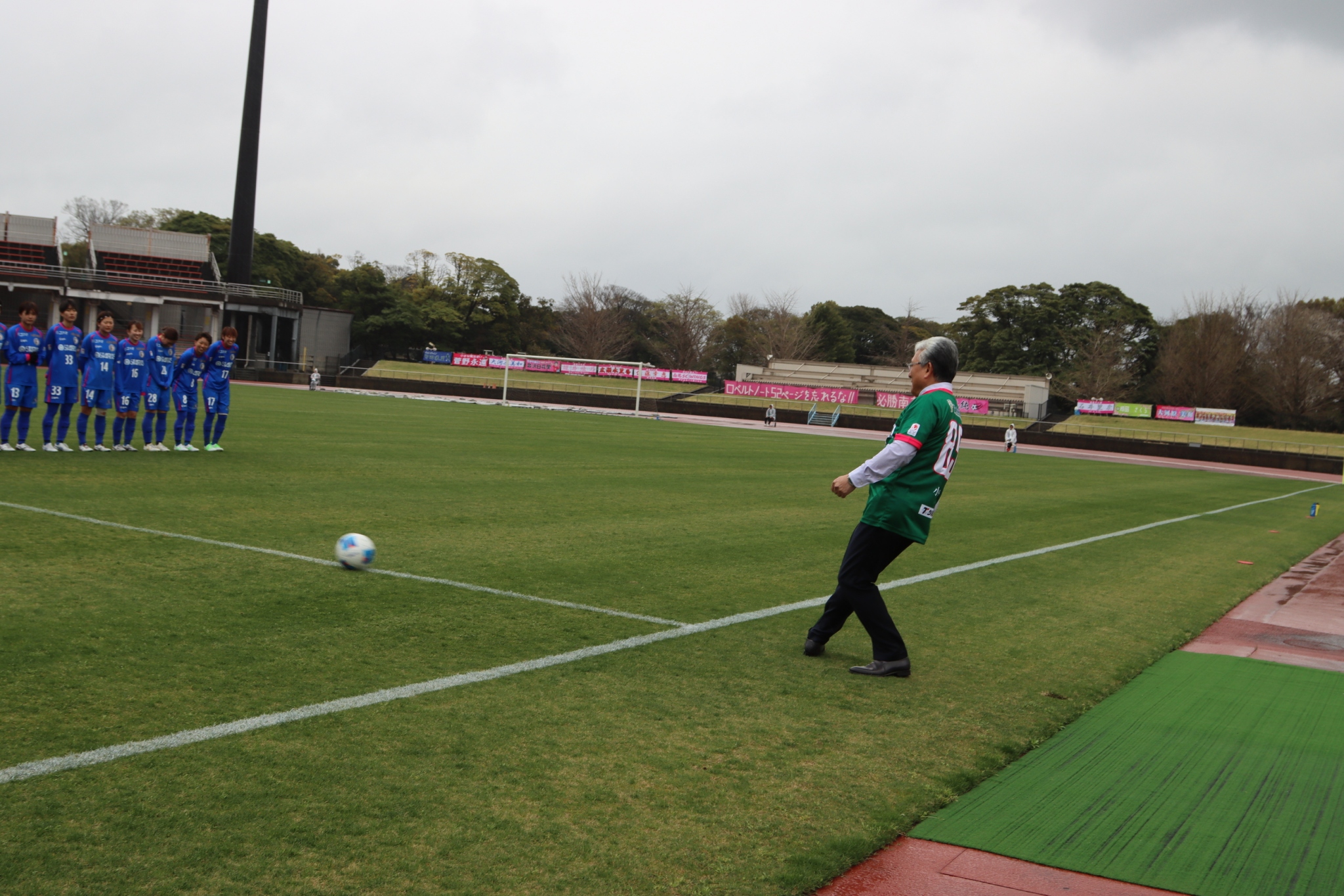 試合前には、市原市長によるキックインセレモニーが行われた。