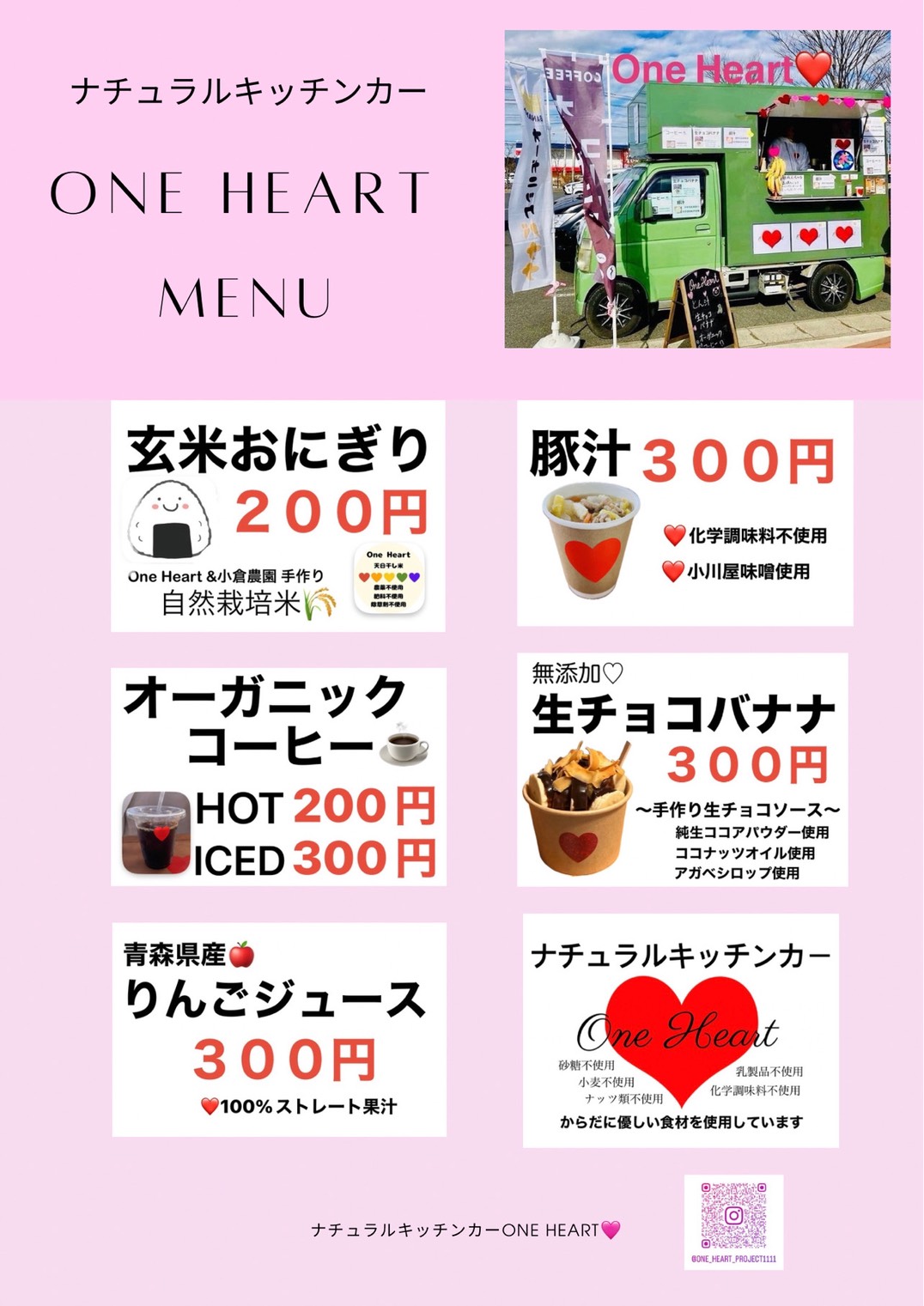 私たちOne Heartは、体に優しい食材を使用しているナチュラルキッチンカーです!