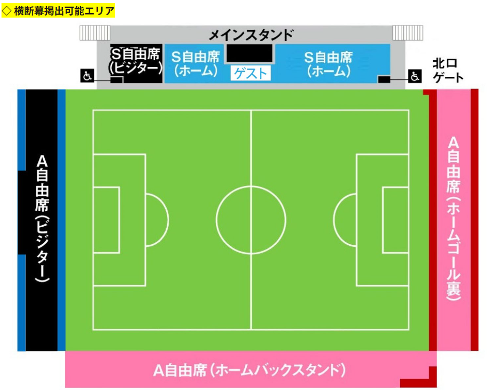 ゴール裏フェンスにて11:30~より掲出が可能となります。
