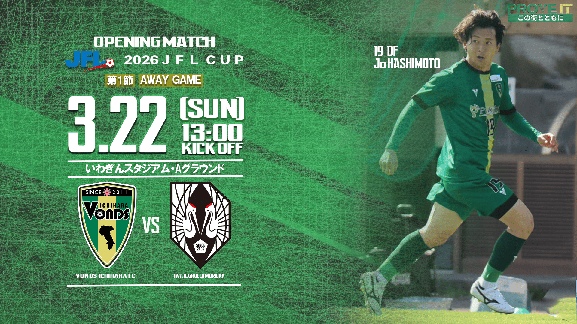 3/22(日)に開催予定の【2026JFL CUP 第1節 いわてグルージャ盛岡】戦についてお知らせします。