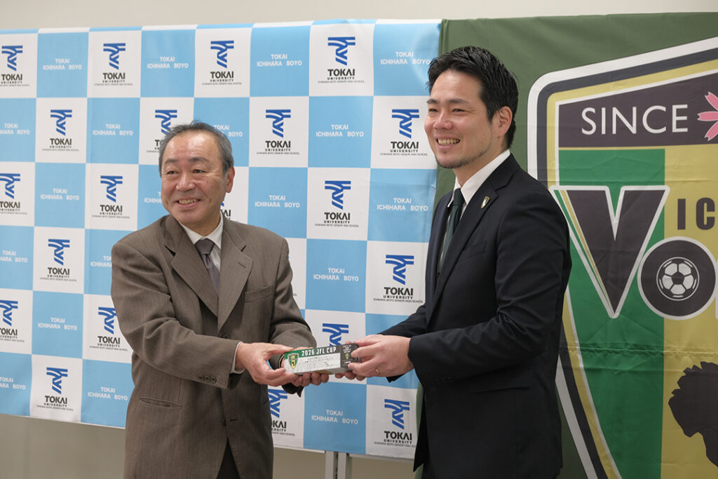 調印後には、VONDS市原より3月28日・4月11日・18日に予定している「2026JFL CUP」ホームゲームのチケット1,000枚も贈呈させていただきました。
