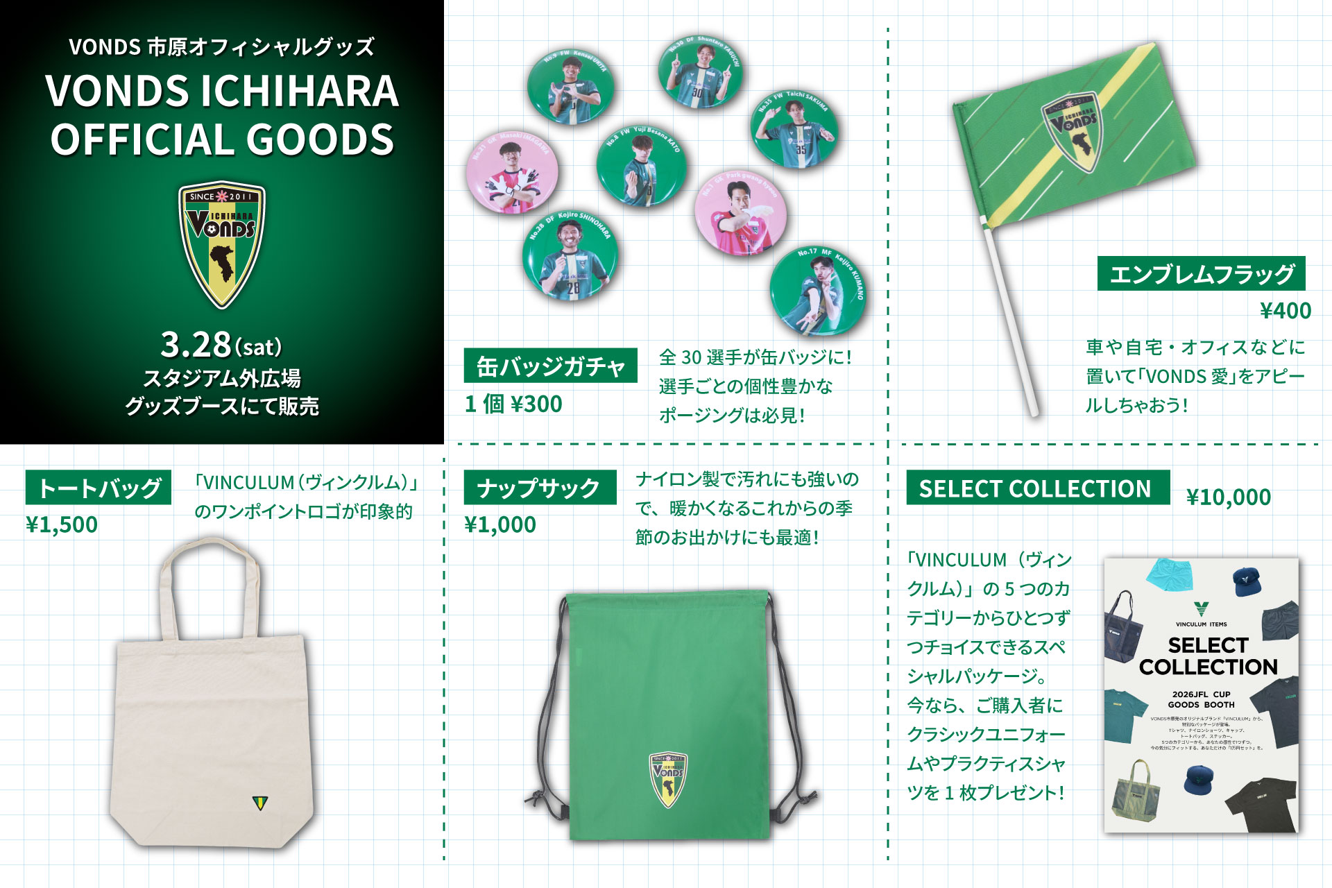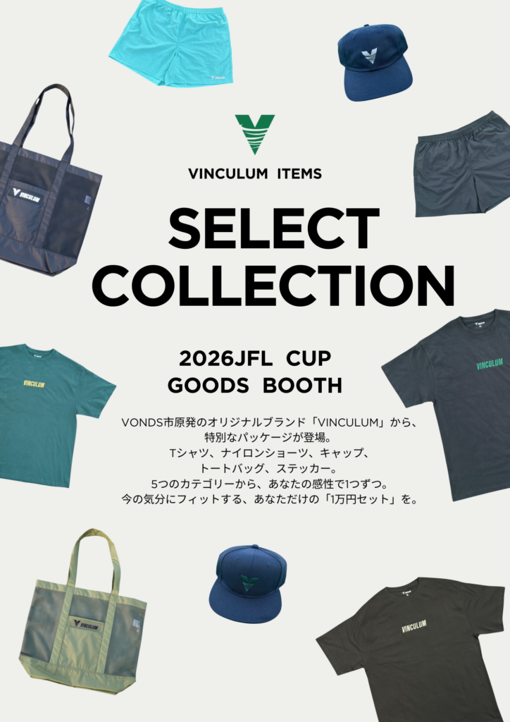 3月28日(土)にゼットエーオリプリスタジアムで開催する「2026JFL CUP」VONDS市原FCのホームゲームにて、新登場となるVONDS市原オリジナルグッズを販売いたします。