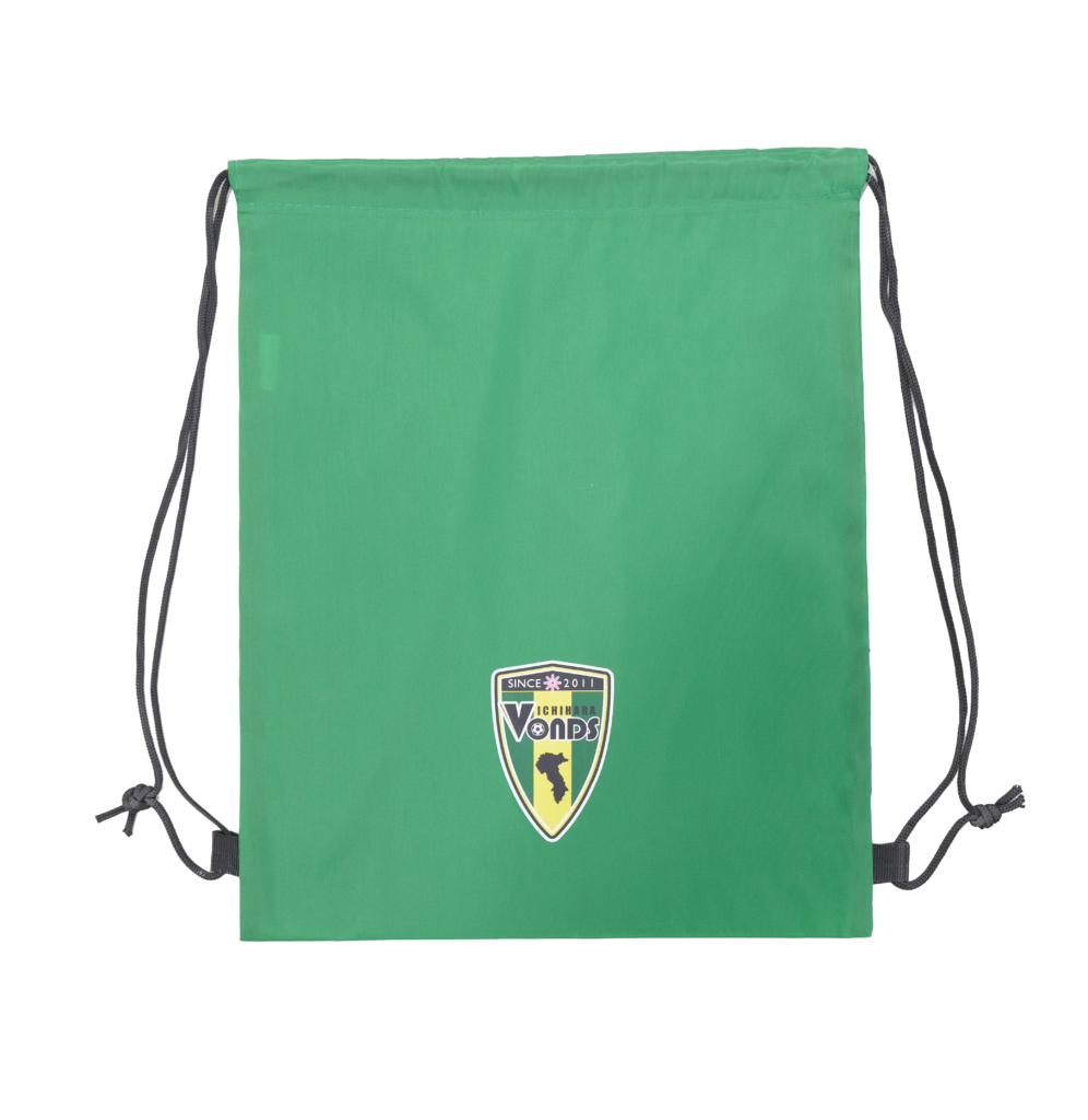 クラブカラーのグリーンにエンブレムが配されたナップザック。ナイロン製で汚れにも強いので、暖かくなるこれからの季節のお出かけにも最適。