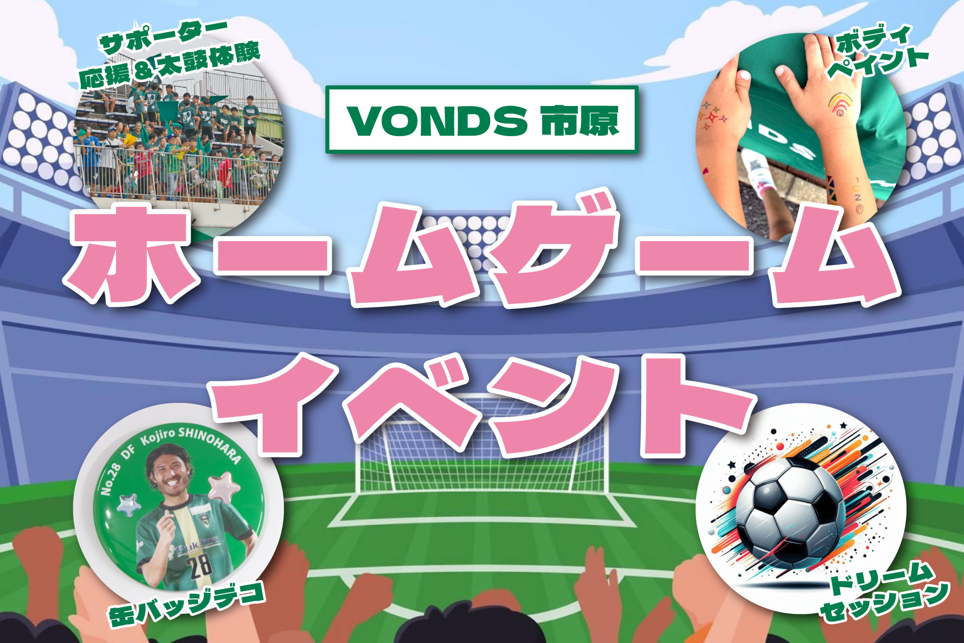 3月28日(土)にゼットエーオリプリスタジアムで開催する「2026JFL CUP」VONDS市原FCのホームゲームでは、多彩なホームゲームイベントを開催いたします。