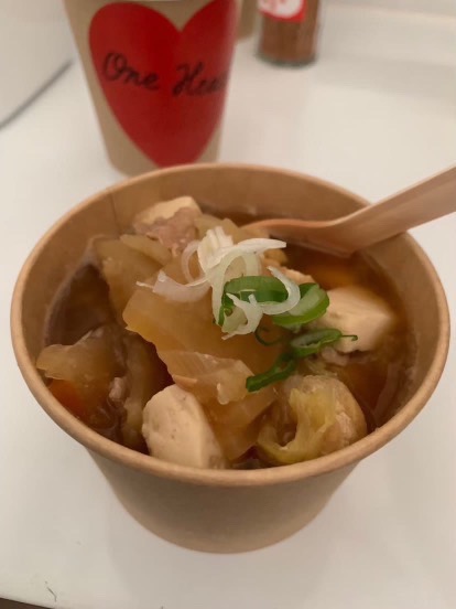 手作りお味噌で作る無化調の豚汁と、One Heartの玄米おにぎりをぜひ食べにきてください♪