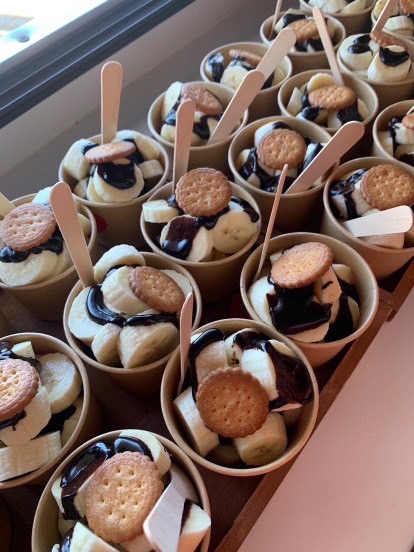子供たちから大人気の「生チョコバナナ」は、お砂糖不使用で作った生チョコソースとオーガニックバナナを使用しています♡
