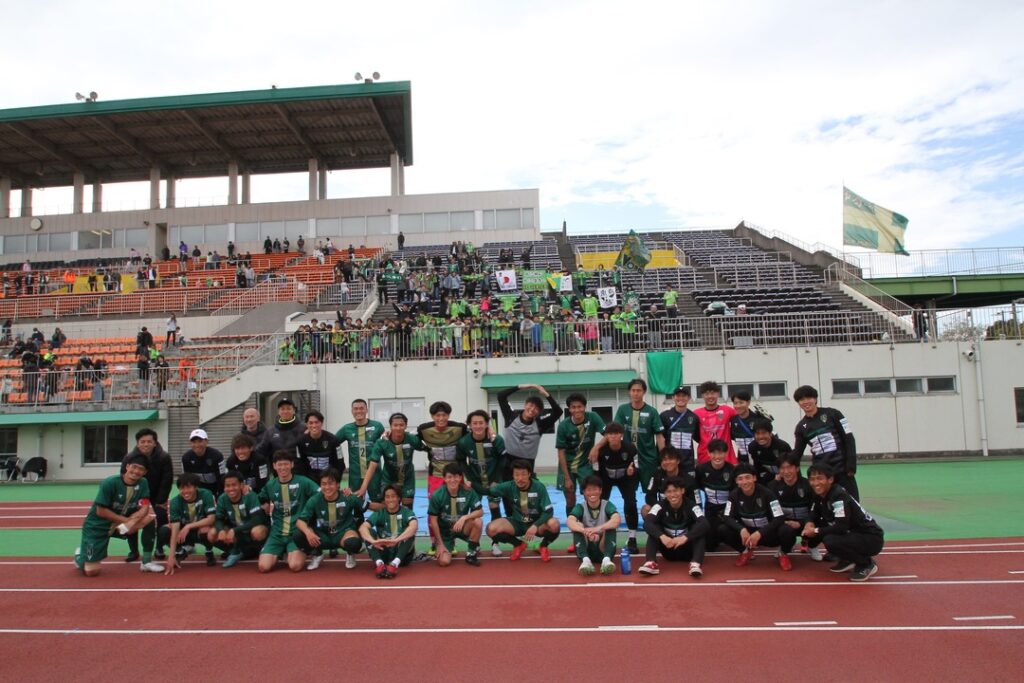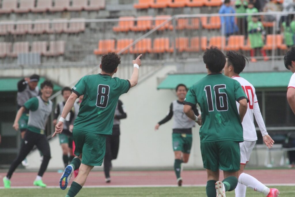 追加点からわずか3分後、後半28分には相手選手がヘディングでクリアしたボールにNo.14鬼島がゴールエリア付近から右足を振り抜きゴールに突き刺す!