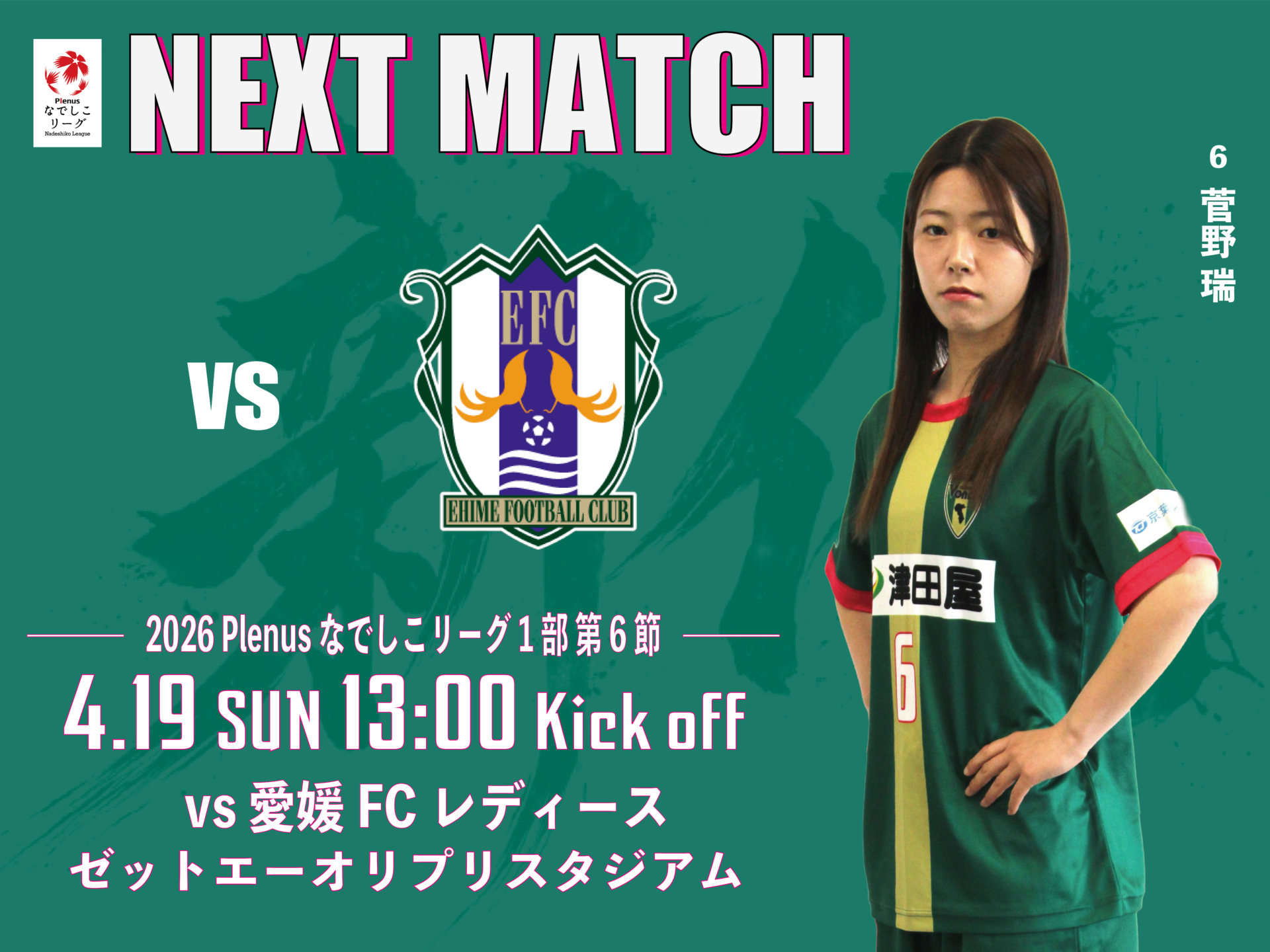 4/19(日)に開催予定の【2026プレナスなでしこリーグ1部 第6節 愛媛FCレディース戦】についてお知らせいたします。