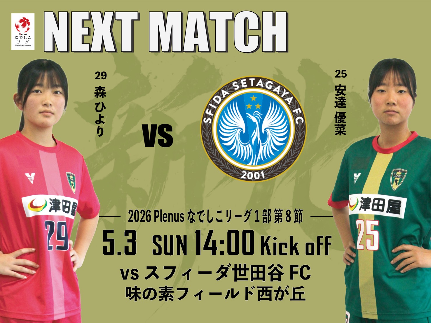 5/3(日)に開催予定の【2026プレナスなでしこリーグ1部 第8節 スフィーダ世田谷FC 戦】についてお知らせいたします。