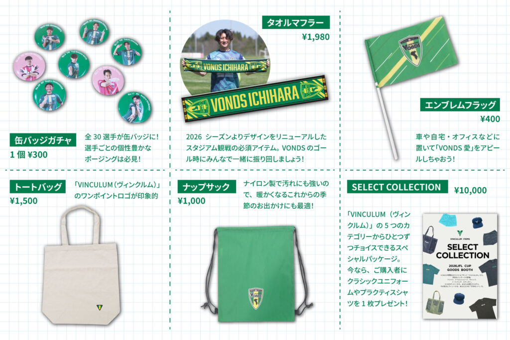 4月11日(土)にゼットエーオリプリスタジアムで開催する「2026JFL CUP」VONDS市原FCのホームゲームにて販売予定のVONDS市原オリジナルグッズのなかからおすすめの商品をご案内いたします。