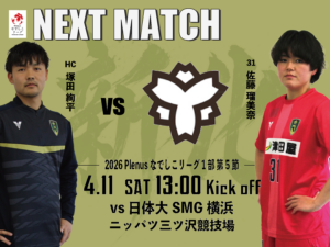 4/4(土)に開催されました【2026Plenusなでしこリーグ1部 朝日インテック・ラブリッジ名古屋戦】の試合結果をお知らせいたします。