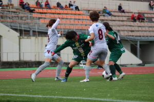 強い風が吹き付ける難しいコンディションの中で行われた一戦。スタジアムには126人の観客が来場した。VONDS市原FCレディースは立ち上がりから集中した守備で試合に入り、安定した試合運びを見せる。