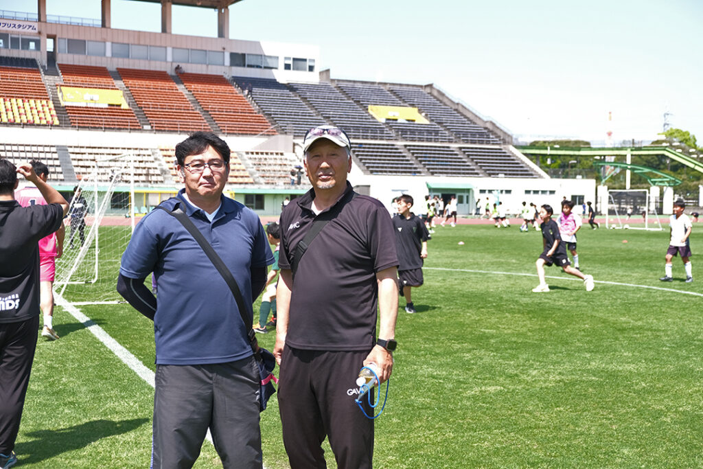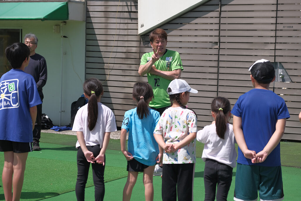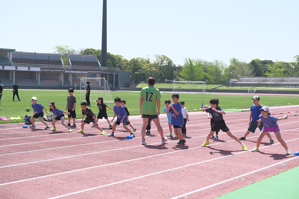 試合前のピッチにて、菜の花ACの監督・須田和人さんを講師に、走り方教室も開催いたしました。