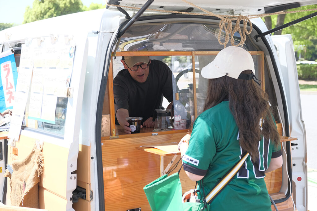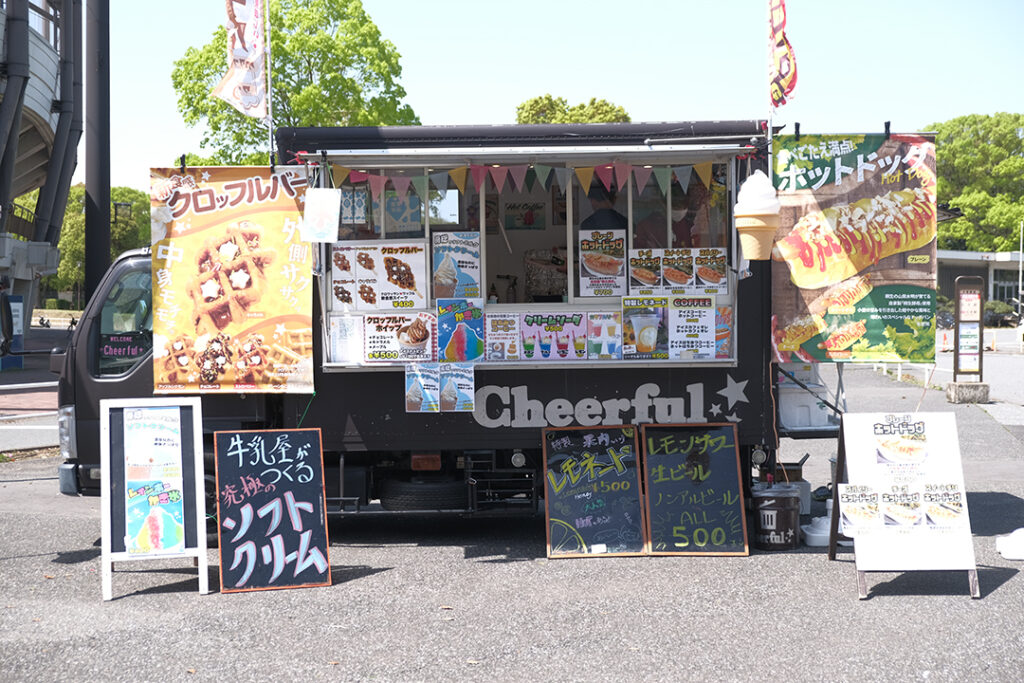 目の前で肉を切り分ける人気のケバブをはじめ、ガーリックシュリンプ丼が人気のハワイアン料理、こだわり素材のクレープや、ジューシー&ビッグサイズのからあげ、注文後に豆を挽く香り豊かな珈琲、発酵バター使用のクロワッサン生地で焼き上げた元祖木更津クロッフルバーなど、スタジアム外広場「ぼんず横丁」には6台の個性的なキッチンカーが出店し、来場者の舌とお腹を満足させてくれました。