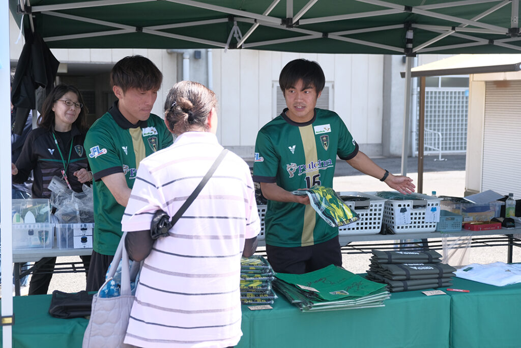 多くのニューアイテムを揃えたグッズブースでは、トップチームの選手たちがグッズを身につけて店頭に並び、ご来場いただいた方々へ接客させていただきました。