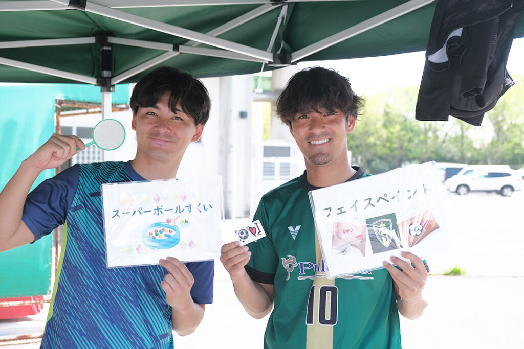 また、カラフルでかわいいスーパーボールをGETできる縁日の定番「スーパーボールすくい」や、顔や手などへシールペイントできる「フェイスペイント」ブースでは、選手が直接ペイントのお手伝いをするなど好評でした。