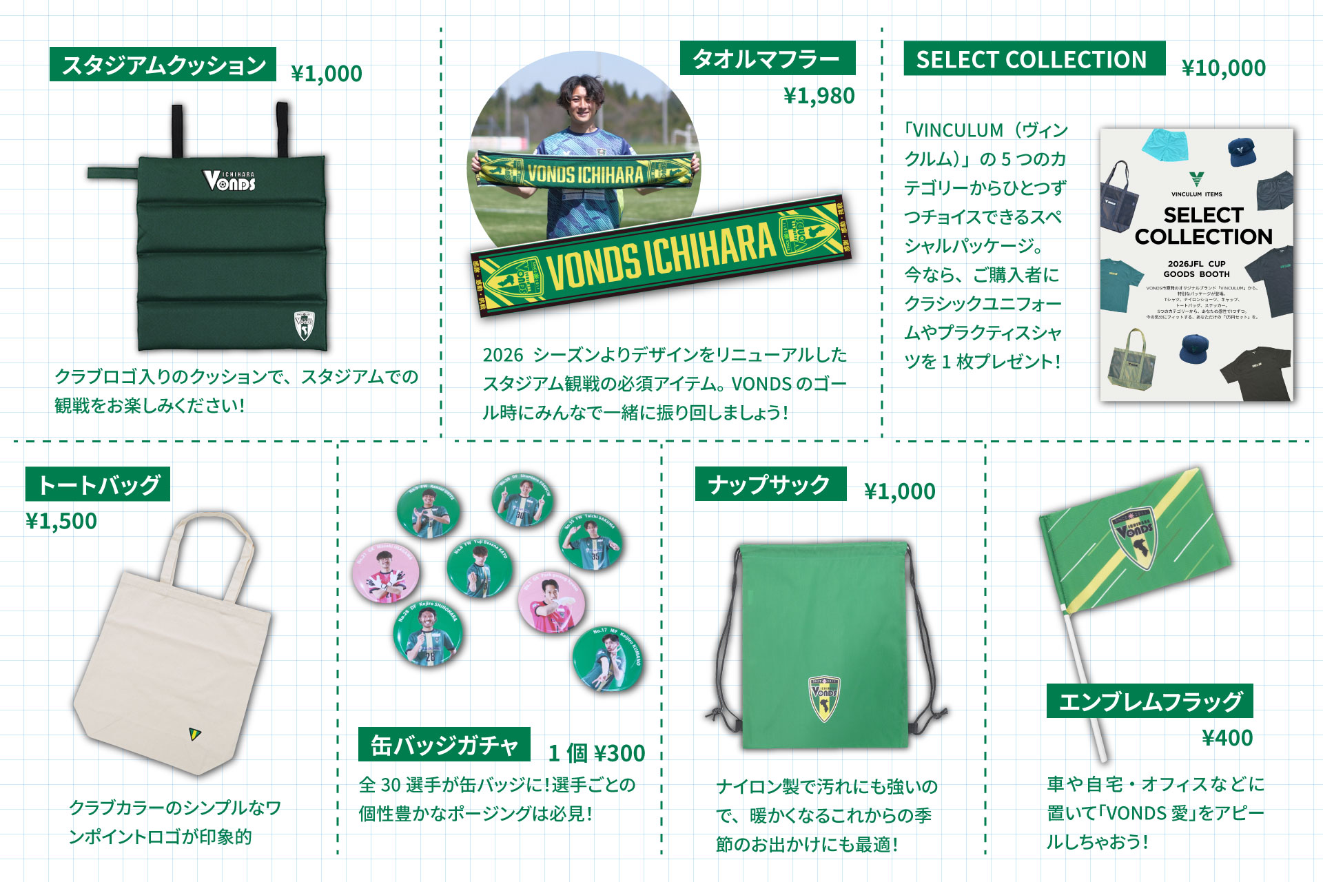 4月18日(土)にゼットエーオリプリスタジアムで開催する「2026JFL CUP」VONDS市原FCのホームゲームにて販売予定のVONDS市原オリジナルグッズのなかから、おすすめの商品をご案内いたします。