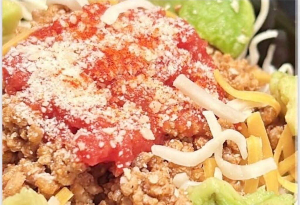 特性トマトソースが堪らない「タコライス」(¥1,000 ※チーズタコライスは¥1,100)は本場沖縄の味が堪能できる!