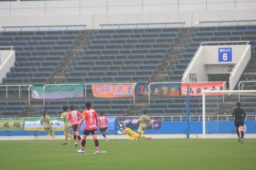 今まで攻撃の軸となっていた選手がやっとの想いでゴールを奪い、なでしこリーグ初得点を飾った。