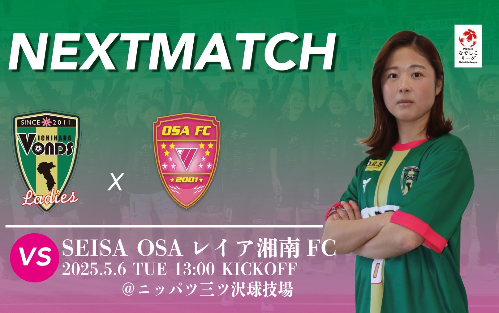 5/6(火)に開催予定の【2025プレナスなでしこリーグ2部 第7節 SEISA OSA レイア湘南FC戦】についてお知らせいたします。