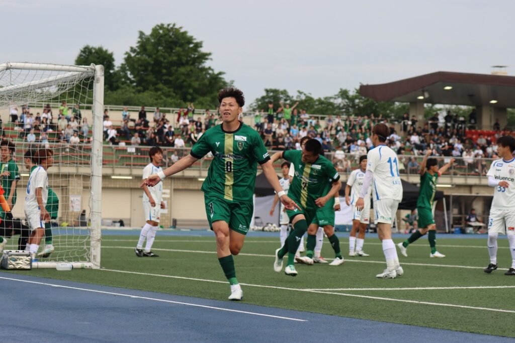 後半からはNo.8加藤・No.15水野が投入され、前半と打って変わり攻撃が活性化。前線でのプレーが増え、チャンスを作り出す。迎えた後半8分にコーナーキックを獲得。キッカーNo.13有永のボールに走り込んできたNo.8加藤のヘディングシュート!苦しい時間を耐え抜き、同点に追いつく!