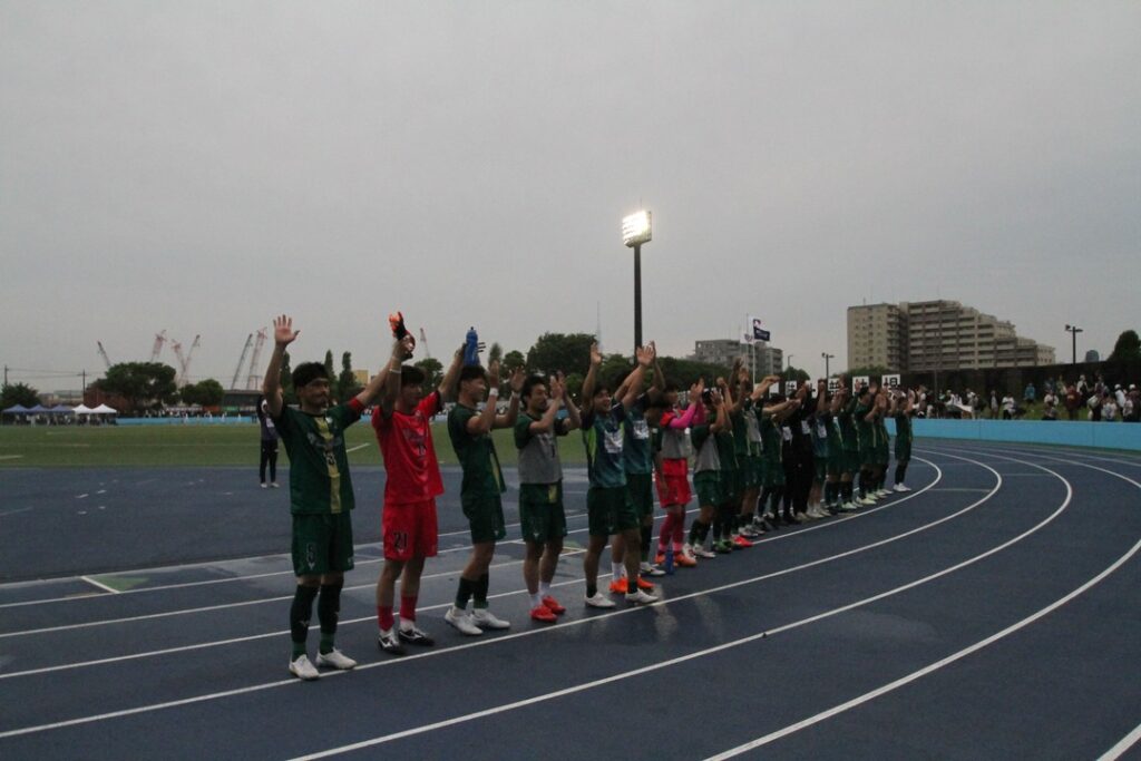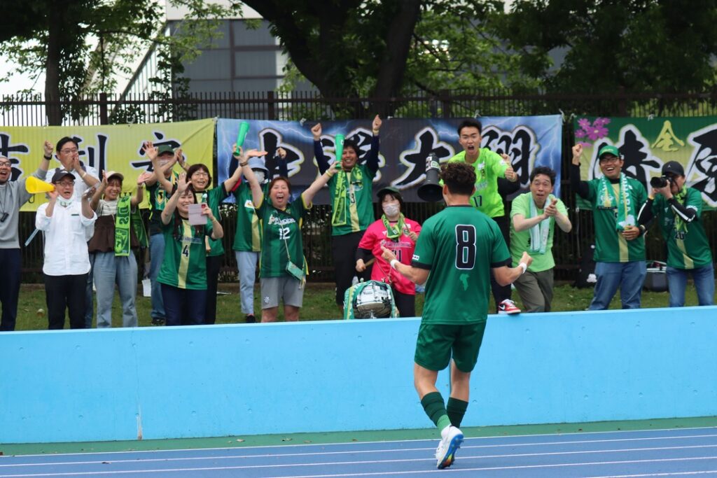 その後も攻めの姿勢を崩すことなく仕掛け続けたチームは、後半20分にNo.19橋本が倒されフリーキックを獲得。キッカーNo.19橋本の素早いボールにNo.2藤嵜がヘディングで押し込みゴールネットを揺らす!セットプレーから逆転に成功したチームは相手の猛攻を耐え、2-1で試合終了。逆転勝利で開幕5連勝を飾った。ご声援ありがとうございました!