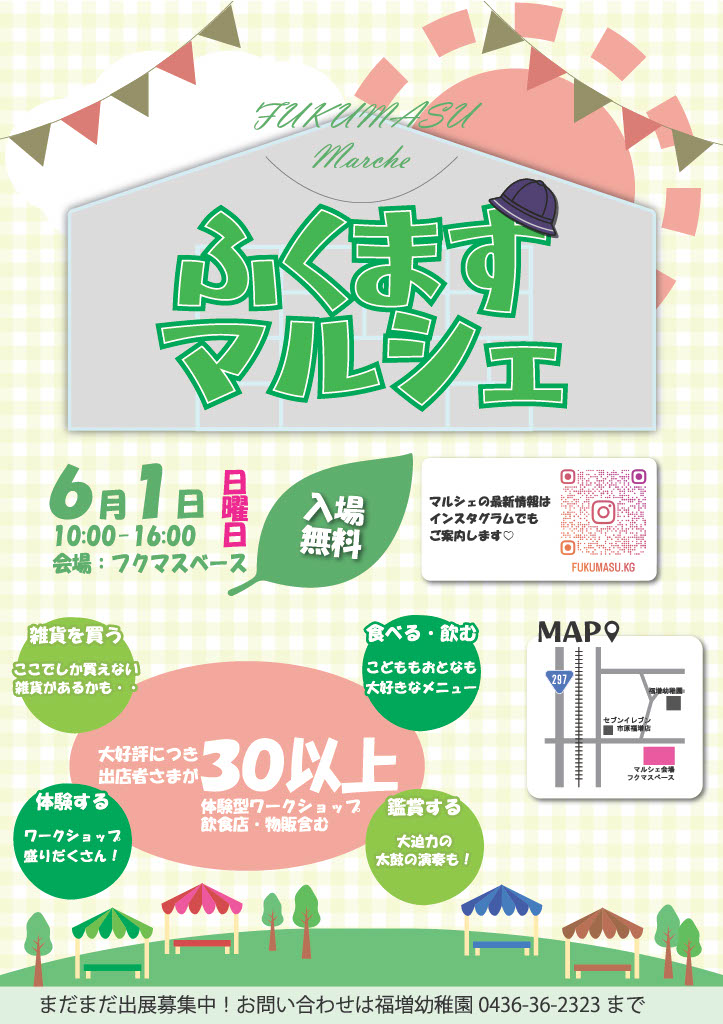 【イベント】6/1(日)ふくますマルシェに参加します 投稿日 2025.05.29 更新日 2025.11.14 著者 清野智世 カテゴリー イベント 日頃よりVONDS市原への温かいご声援、誠にありがとうございます。 この度、6/1(日)にフクマスペースにて開催される「ふくますマルシェ」にVONDS市原FCが参加することになりましたのでお知らせいたします。 詳細 ■日時6/1(日)11:00〜15:30■会場フクマスペース ■イベント内容・VONDSミニ運動会(ボール乗せレース)(ドリブルレース)・物販ブース&スタンプラリー
