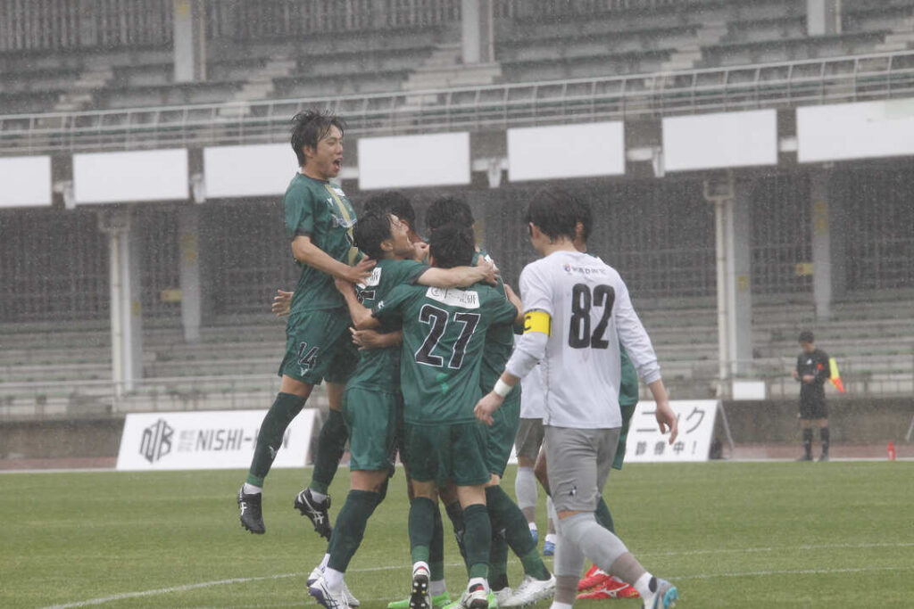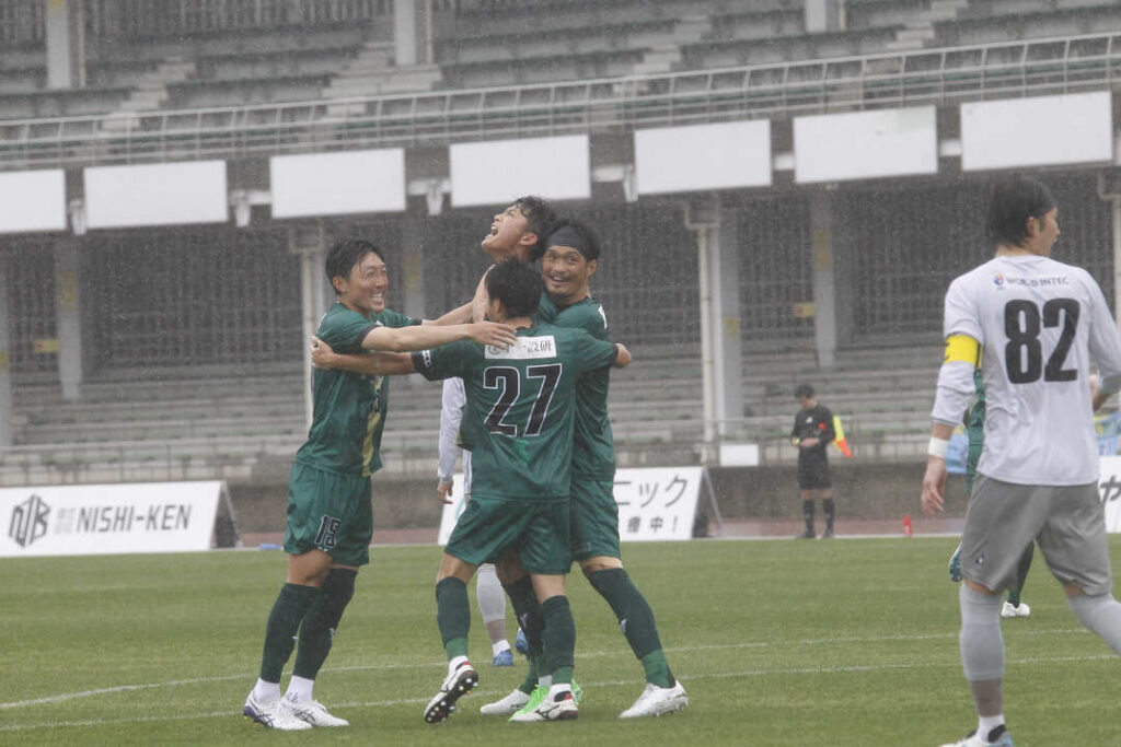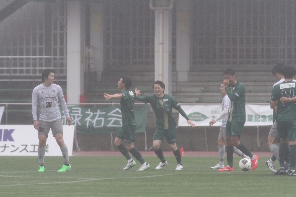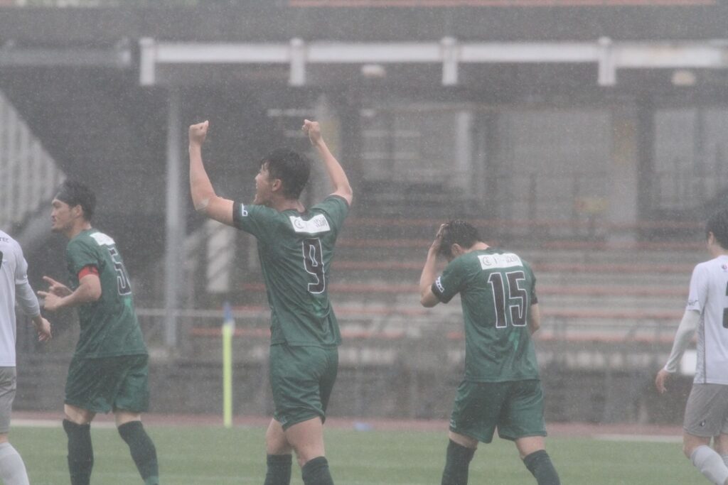 第5節南葛SCとの直接対決に逆転勝利を収め、開幕5連勝と泥臭くも着実に勝ち点を積み上げてきた。再びホーム・ゼットエーオリプリスタジアムに戻ってきたチームは、東邦チタニウムと対戦。試合前から降り続いた雨が止むことはなく、時折雨脚が強まる中でのゲームとなった。立ち上がりから積極的に攻め続け、前半14分にコーナーキックを獲得。キッカーNo.13有永のボールにNo.9本吉がピンポイントで合わせ先制点を挙げる!
