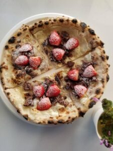 530℃の石窯で一気に焼き上げる熱々のピザ