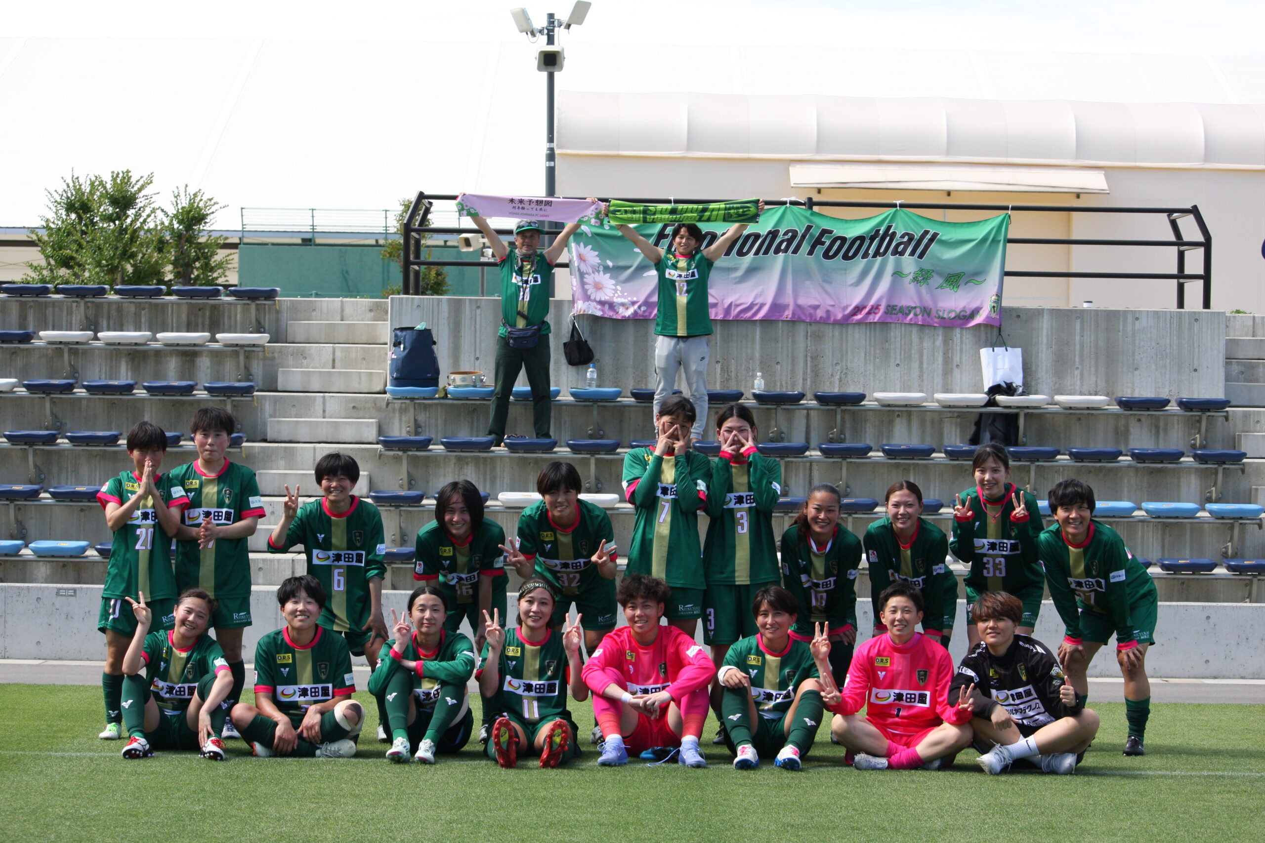 勝利時のみ試合後、選手全員と一緒に記念撮影を行います!