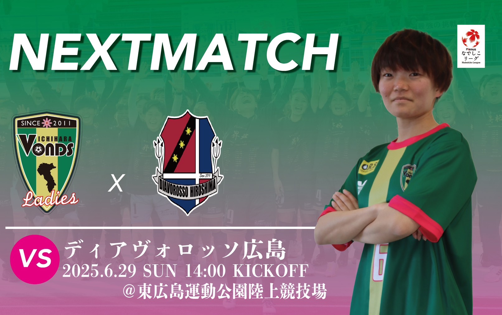 6/29(日)に開催予定の【2025プレナスなでしこリーグ2部 第17節 ディアヴォロッソ広島戦】についてお知らせいたします。