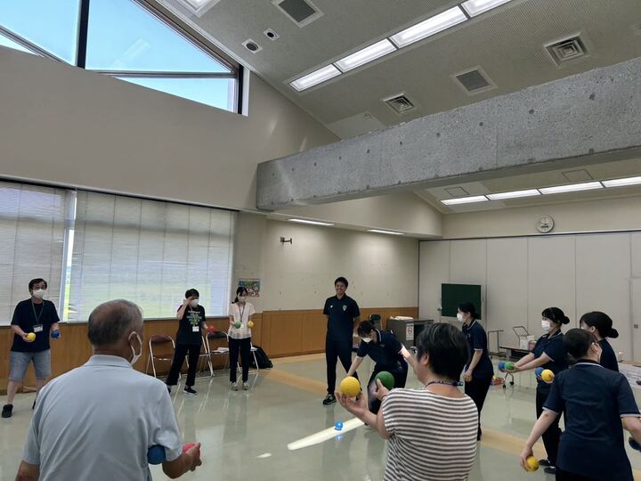 講義の中では、市民の方が求められる地域貢献を聞き、今後の活動に活かせるご意見も頂きました。 終盤には、実技を行いご高齢の方でも毎日続けられる運動を一緒に活動し、日々の運動不足を解消していただき今後継続的な運動をやるキッカケ作りとなりました。