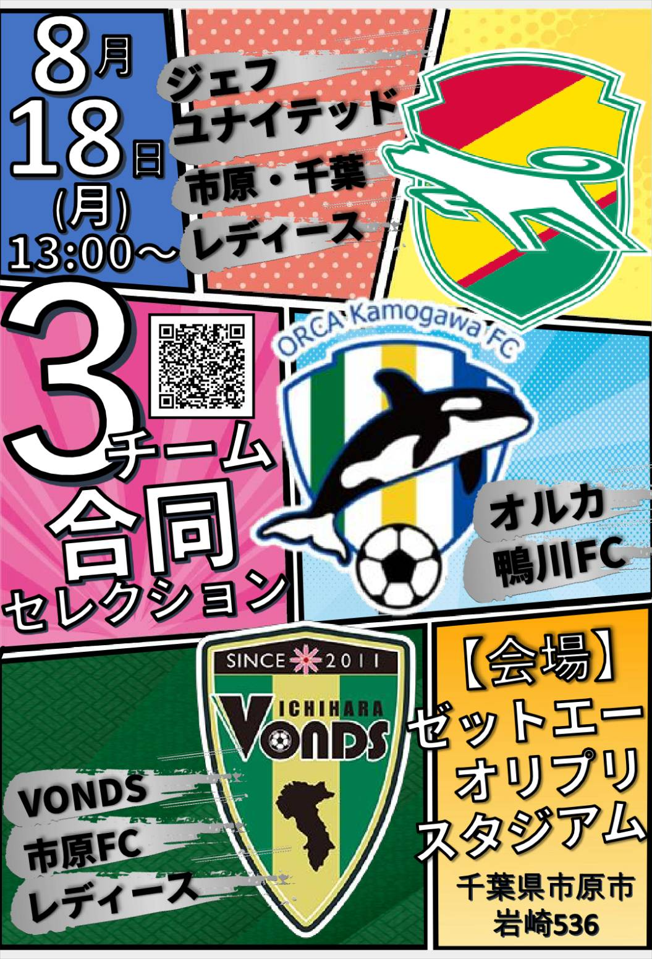 主催チームは、千葉県内の女子サッカーチームの ジェフユナイテッド市原・千葉レディース(WEリーグ所属)、オルカ鴨川FC(なでしこリーグ1部所属)、VONDS市原FCレディース(なでしこリーグ2部所属)の3チームです。