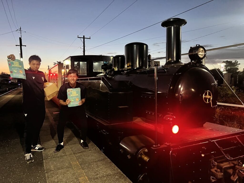 【イベント】7/25(金)イベント参加報告 投稿日 2025.07.31 著者 清野智世 カテゴリー イベント 日頃よりVONDS市原への温かいご声援、誠にありがとうございます。 7/25(金)に開催された「牛久八坂祭」にVONDS市原が参加しました。 牛久八坂祭 当日は、にぎやかな山車の上でクラブの紹介をさせていただきました。多くの方々が足を止めて耳を傾けてくださり、地域の皆さまの温かさや応援の声を直接感じることができた、貴重なひとときとなりました。 今回、「牛久八坂祭」へ参加させていただきありがとうございました! VONDS市原では今後とも地域の活動に参加してまいります。