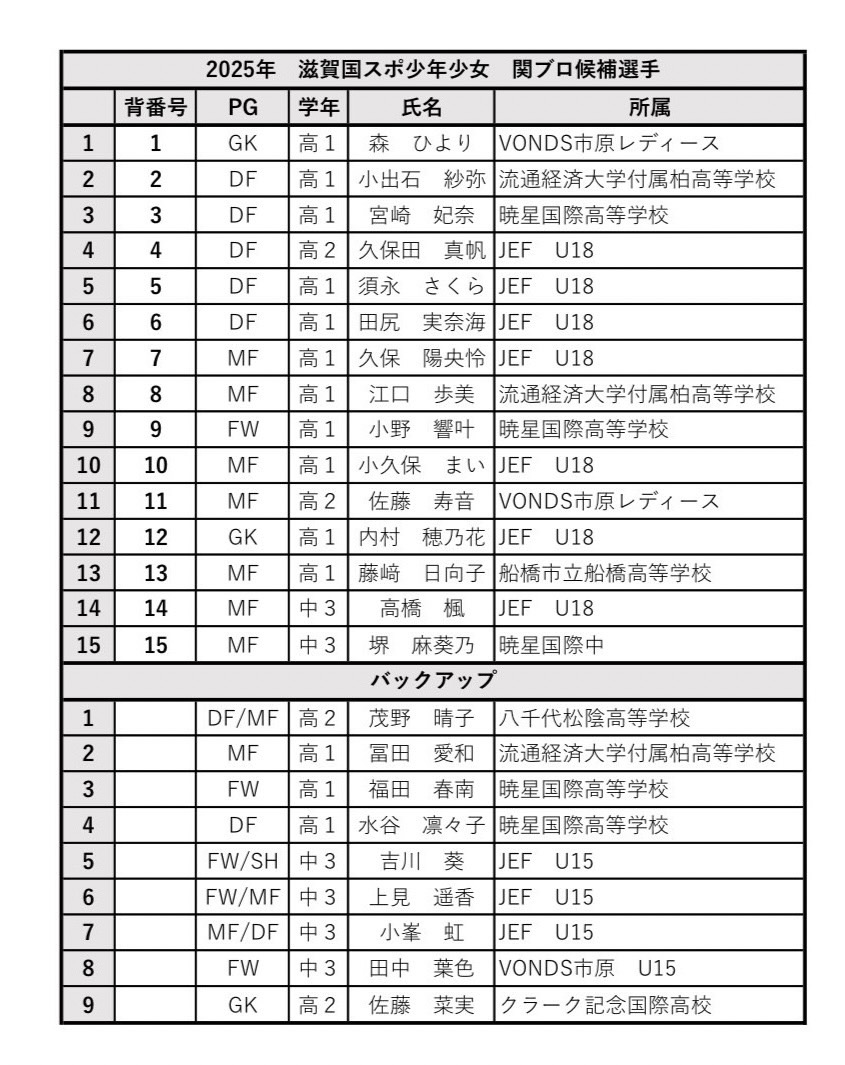 この度、8/13(土)〜8/14(日)に開催されます「第79回国民スポーツ大会 関東ブロック大会 サッカー競技」において、千葉県少年女子代表メンバーにVONDS市原FCレディース所属 佐藤寿音選手と森ひより選手の2名が選出されましたのでお知らせいたします。