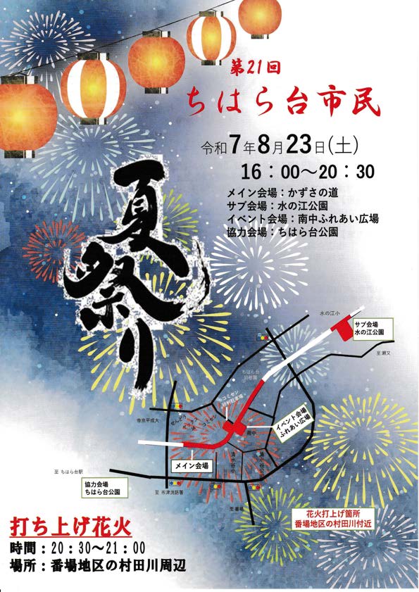 【イベント】8/23(土)第21回ちはら台市民夏祭りに参加します 投稿日 2025.08.22 更新日 2025.11.14 著者 清野智世 カテゴリー イベント 日頃よりVONDS市原への温かいご声援、誠にありがとうございます。 この度、8/23(土)にかずさの道にて開催される「第21回ちはら台市民夏祭り」にVONDS市原が参加することになりましたのでお知らせいたします。 詳細 ■日時8/23(土)16:00〜21:00■会場かずさの道 ■イベント内容・物販ブースにて8/30(土)南葛SC戦 チケット販売を実施予定・VONDS市原オリジナルフェイスペイント実施予定