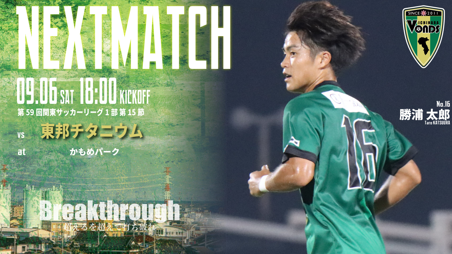 9/6(土)に開催予定の【第59回関東サッカーリーグ1部 第15節 東邦チタニウム】戦についてお知らせします。