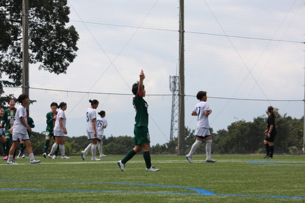 キッカーは#17後藤。右足から放たれたボールは、綺麗な放物線を描きファーサイドのネットに吸い込まれ会場を沸かした。待望の追加点で試合を2-0にする。