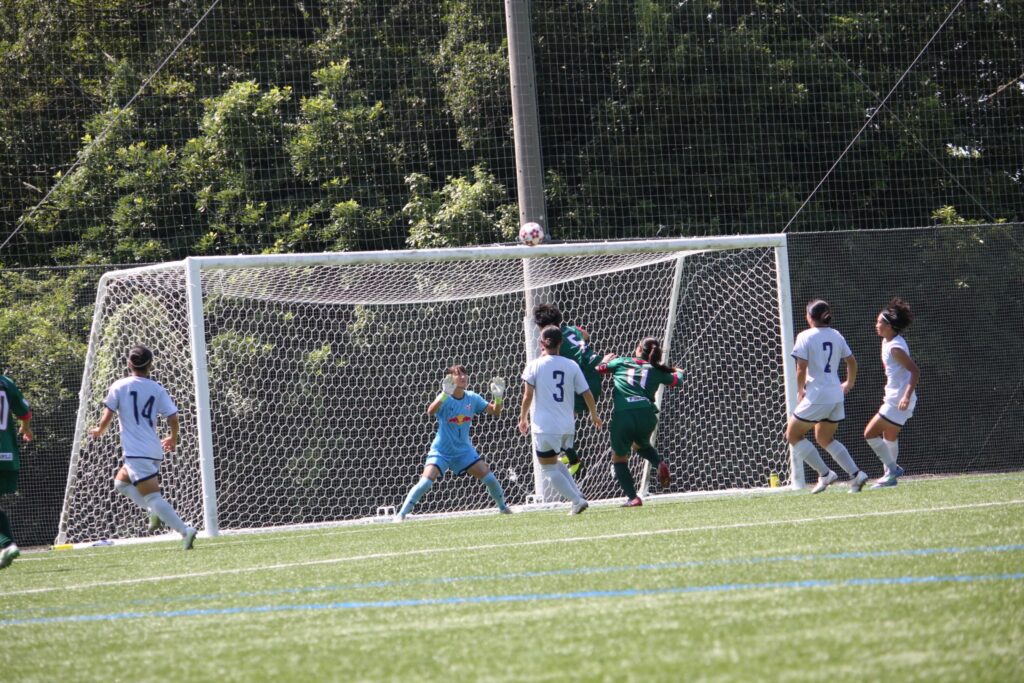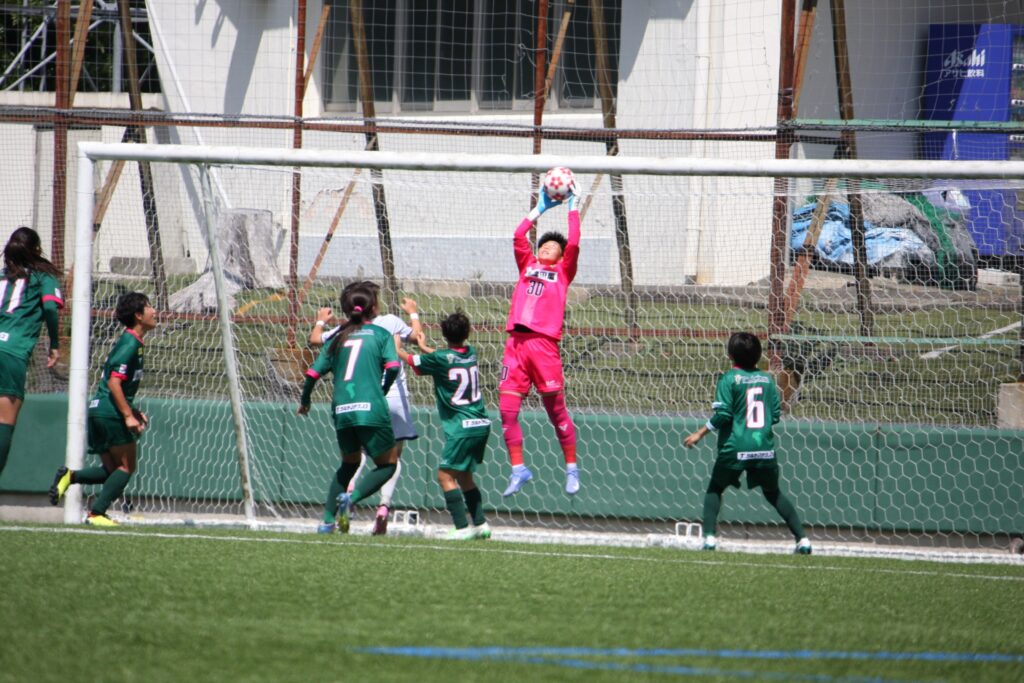 RB大宮U18のCKをヘディングで合わせられたが、#30中村がキャッチ。