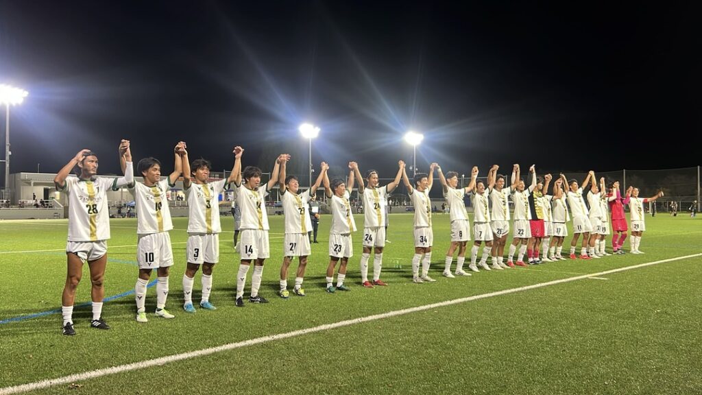 前節・東京ユナイテッドFC戦にて、リーグ戦8試合ぶりの勝利をあげたチームは、アウェイでジョイフル本田つくばFCとの一戦に挑む。No.1折口が初のスタメン起用、さらにNo.17吉田が5試合ぶりにスタメンに復帰した。試合は立ち上がりから主導権を握り、相手陣地へ積極的に仕掛けていったもののゴールを奪い切れないまま前半を終える。後半に入っても流れは変わらず、何度も波状攻撃を続けたものの、1点が遠い。迎えた後半43分、No.34荒井のシュートがペナルティエリア内にいた相手選手に当たりPKの判定に。キッカーはNo.29大友、右足で思い切りシュートを決め待望のゴールが生まれる。終了が迫る中で1点を掴み取り勝利、2連勝を飾った。ご声援ありがとうございました!
