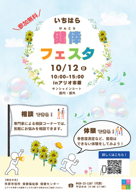 【イベント】10/12(日)いちはら健倖フェスタに参加します 投稿日 2025.10.09 更新日 2025.11.14 著者 清野智世 カテゴリー イベント 日頃よりVONDS市原への温かいご声援、誠にありがとうございます。 この度、10/12(日)にアリオ市原サンシャインコート(屋外)にて開催される「いちはら健倖フェスタ」にVONDS市原が参加することになりましたのでお知らせいたします。 詳細 ■日時10/12(日)10:00〜15:00■会場アリオ市原サンシャインコート(屋外) ■イベント内容・人工芝ブース(10:00-15:00)「スポーツ測定」実施予定①20m走②ジャンプ③柔軟性④「おやこ運動教室」・グッズ販売実施予定