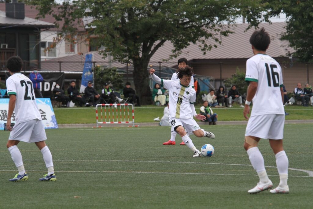 1回戦・中京大学FC(愛知県/東海)との対戦を2-0で制し、2回戦はFC徳島(徳島県/四国)との一戦に挑む。1回戦から、No.15水野、No.17吉田、No.16勝浦がスタメン起用。会場では時折小雨が降り、肌寒さを感じる中キックオフ。立ち上がりからとにかく高い位置でプレーすることを徹底し、プレッシャーをかけ積極的にチャンスを生み出していく。得点が奪いきれない中、迎えた前半24分、まさにプレッシャーをかけ続けたことで生まれたセットプレーだった。No.27郡司がボールを奪いにいった際に相手選手との交錯、ペナルティエリア外だがゴール真正面の位置でセットプレーを獲得。キッカーNo.19橋本が直接決めて先制点を挙げる!追加点を狙い仕掛け続けていくチームだったが、徐々に攻勢を強める相手我慢の時間が続く。ゴール前で決定機を与えるもNo.21今川のファインセーブが光り無失点で抑えた。最後まで前半の1点を守り切って、2回戦突破を決め、準々決勝へと駒を進めた。ご声援ありがとうございました!