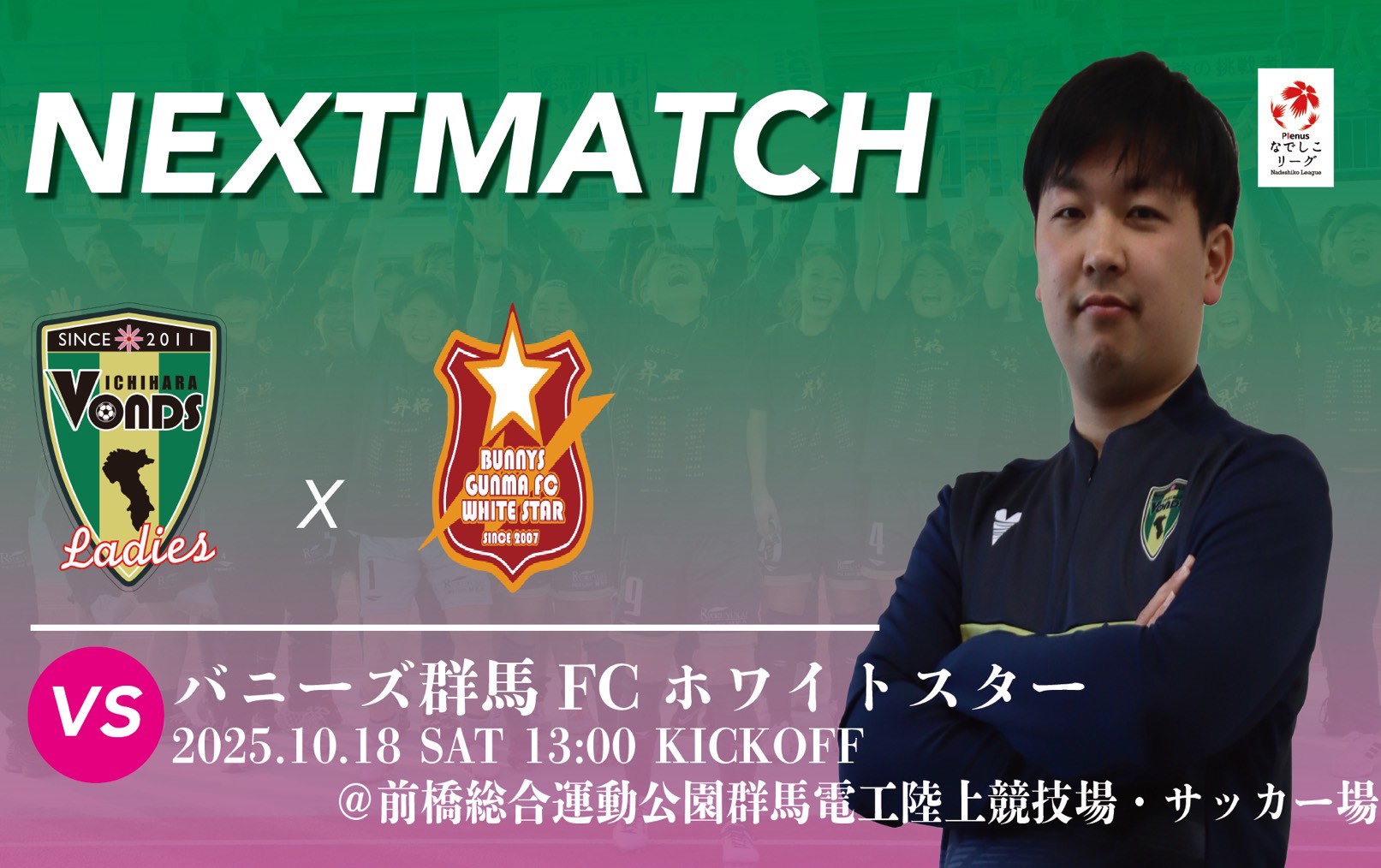 10/18(土)に開催予定の【2025プレナスなでしこリーグ2部 第22節 バニーズ群馬FCホワイトスター 戦】についてお知らせいたします。